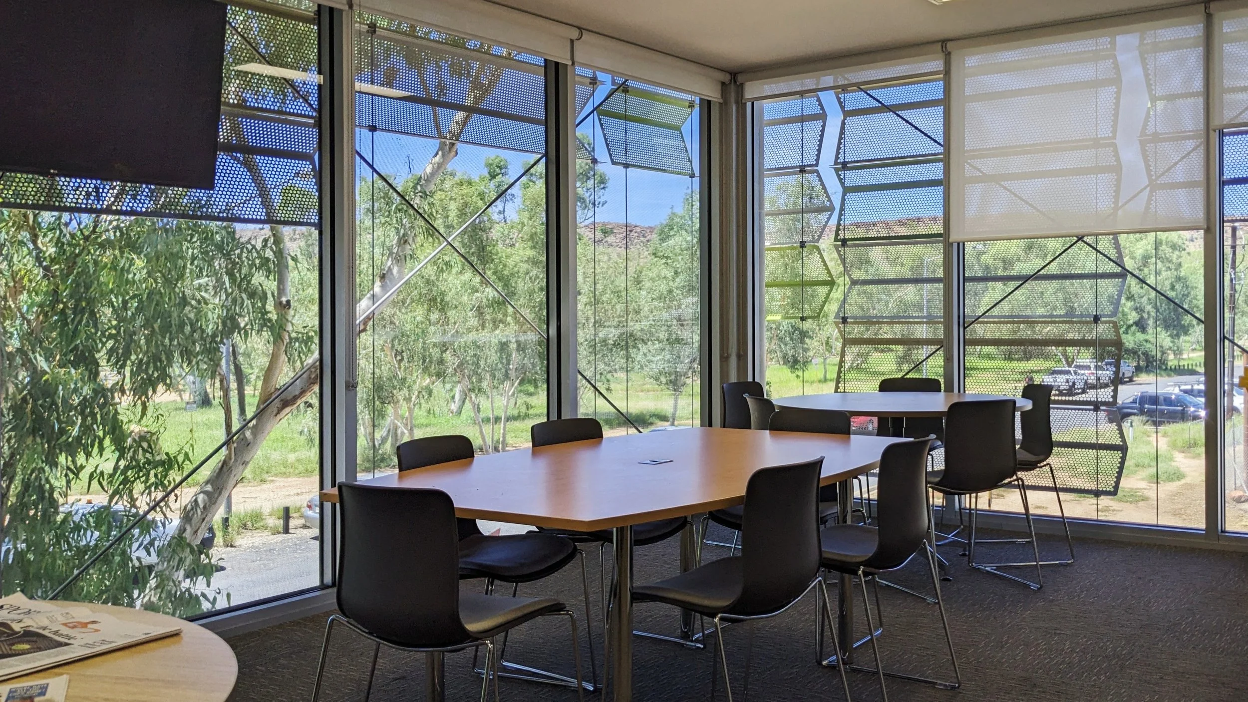 The new upper-level interior spaces have sweeping views to the Todd River and MacDonnell Range. This level is designed to promote a positive staff culture with generous staff facilities and flowing spaces that encourage interaction.