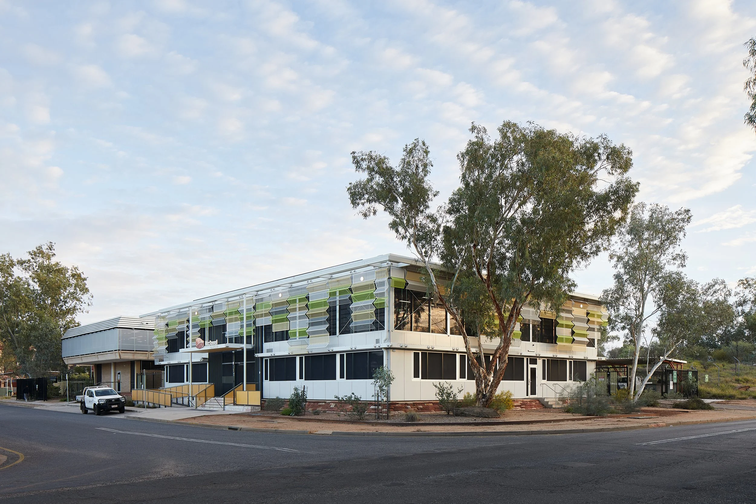 The development maximized the use of MacDonnell Regional Council’s constrained site by investigating options for use of the site, resulting in the addition of a second storey onto their existing offices, and developing a prominent, legible and accessible public entry from Bagot Street.