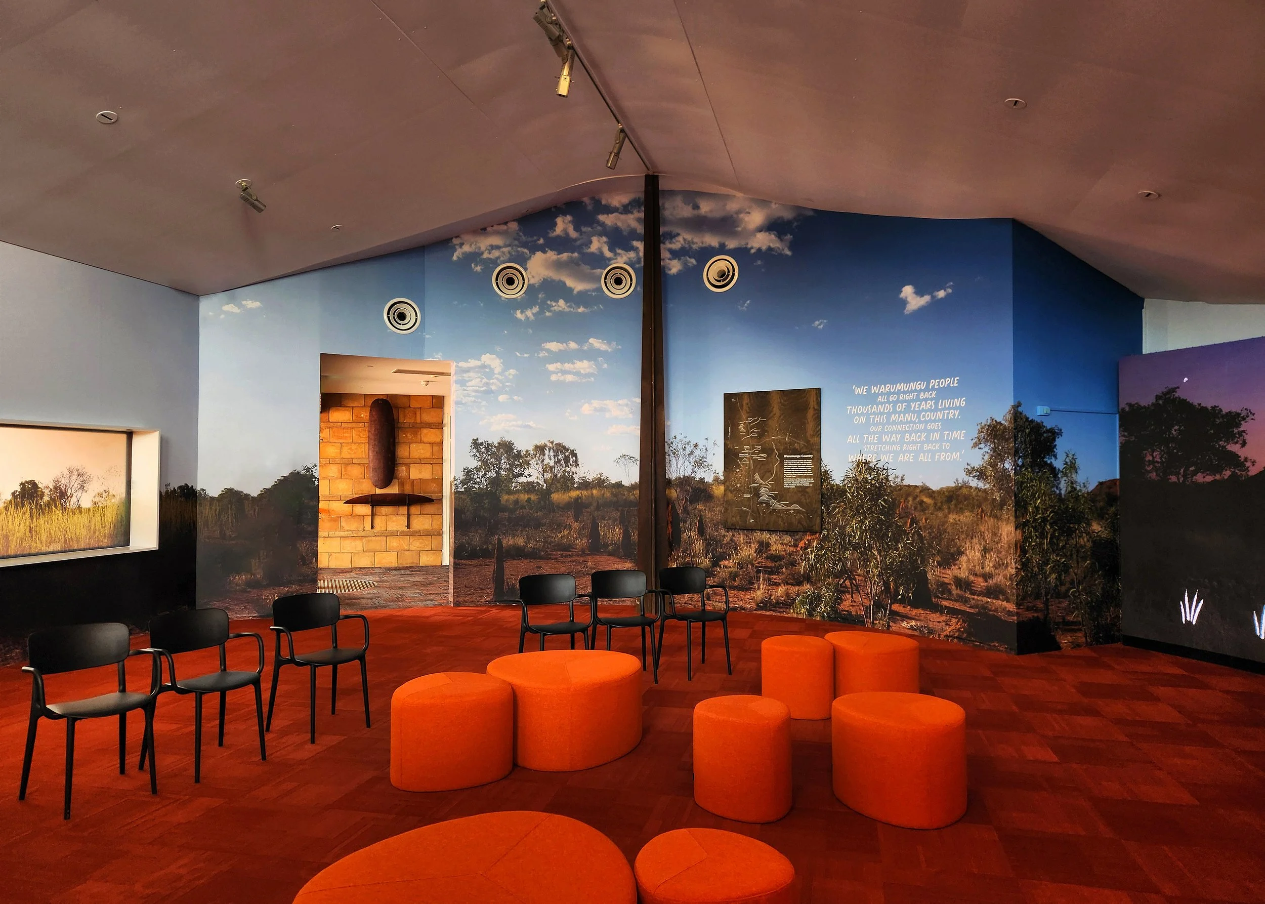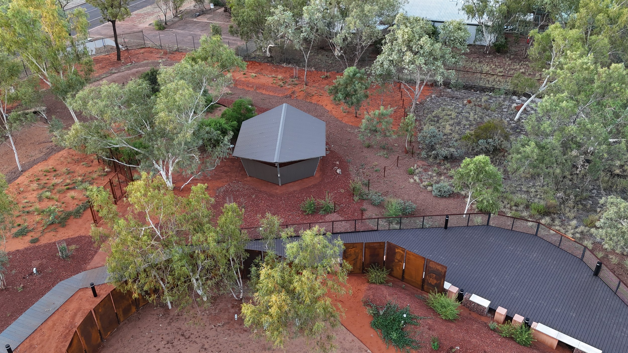 SDA worked with FRD and Rattlepod Landscaping to upgrade the visitor experience with a cafe and contemporary exhibition, and create a unique desert-inspired landscape that supports Warumungu cultural activities and educates and guides visitors through a cultural experience.