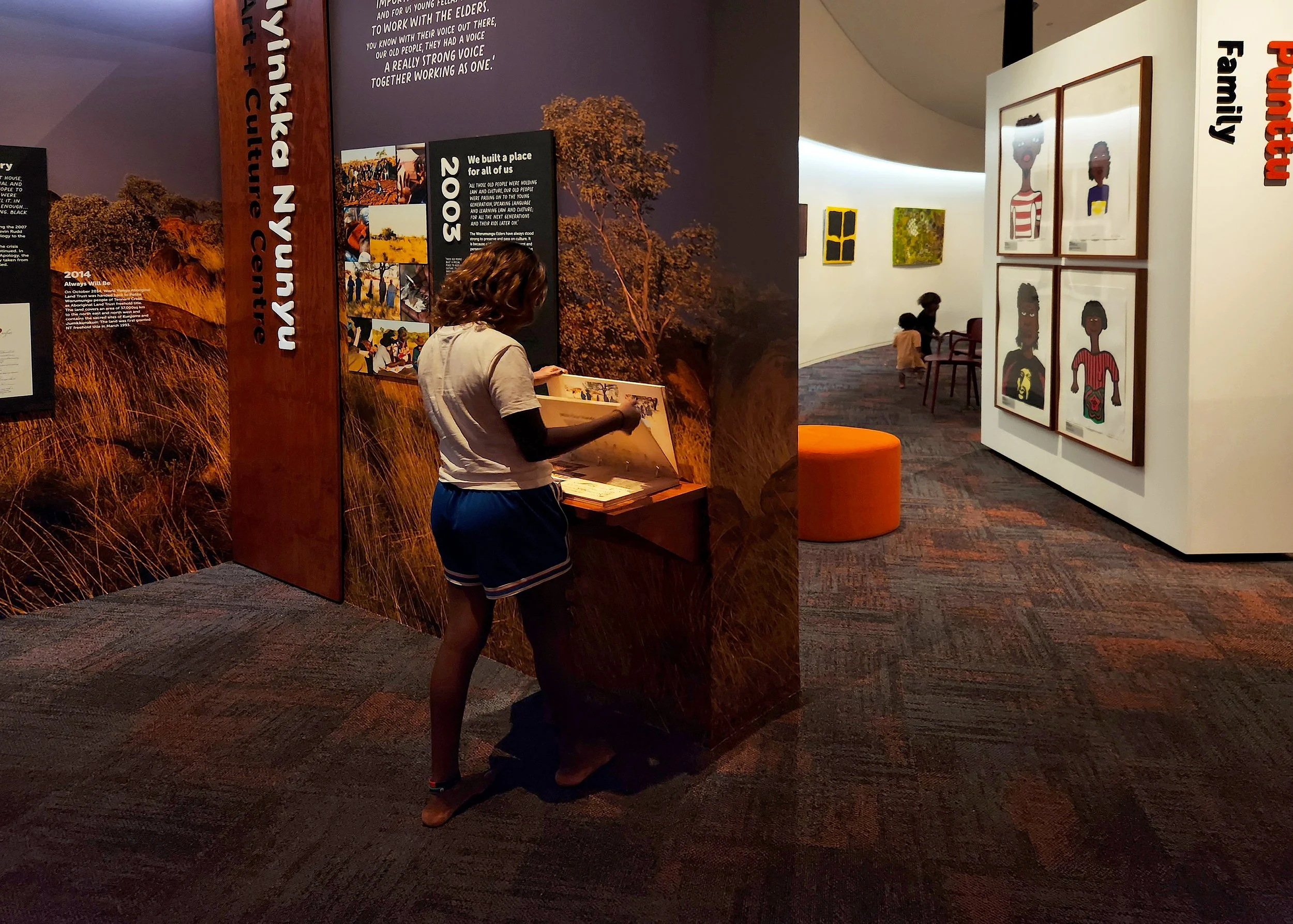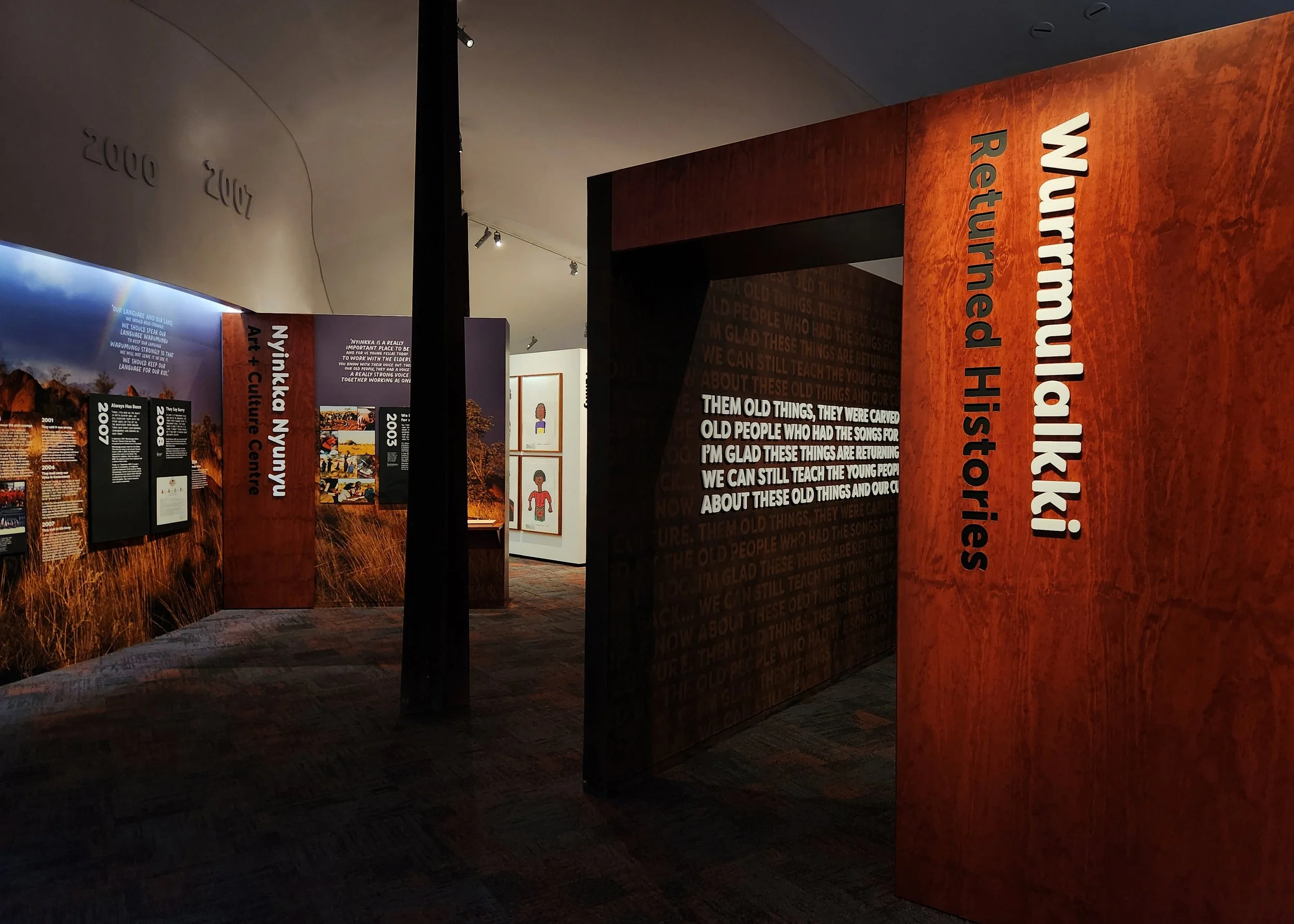 The Nyinkka Nyunyu Art and Culture Centre sits adjacent to the Stuart Highway in Tennant Creek and is named after the Nyinkka spiny-tailed goanna, an ancestral being for Warumungu people of the area. The urban site is unique in that it contains a powerful sacred site, providing context for ceremony and other cultural activities.